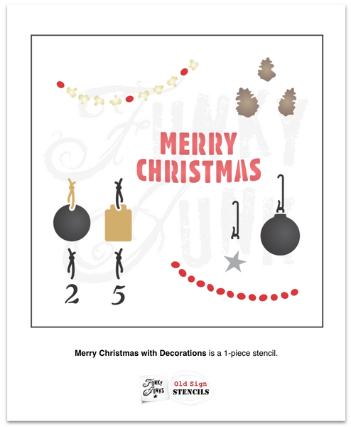 Add some holiday cheer to your next DIY Christmas project with this Merry Christmas with Decorations stencil FJ150!